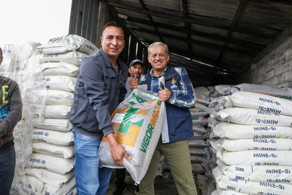 Con el firme compromiso de impulsar el desarrollo agrícola y fortalecer la economía rural, la Prefectura del Cañar realizó la entrega de 150 kits de fertilizantes edáficos en la comunidad de Javin, en beneficio directo de más de 150 familias productoras de la zona baja de la provincia.